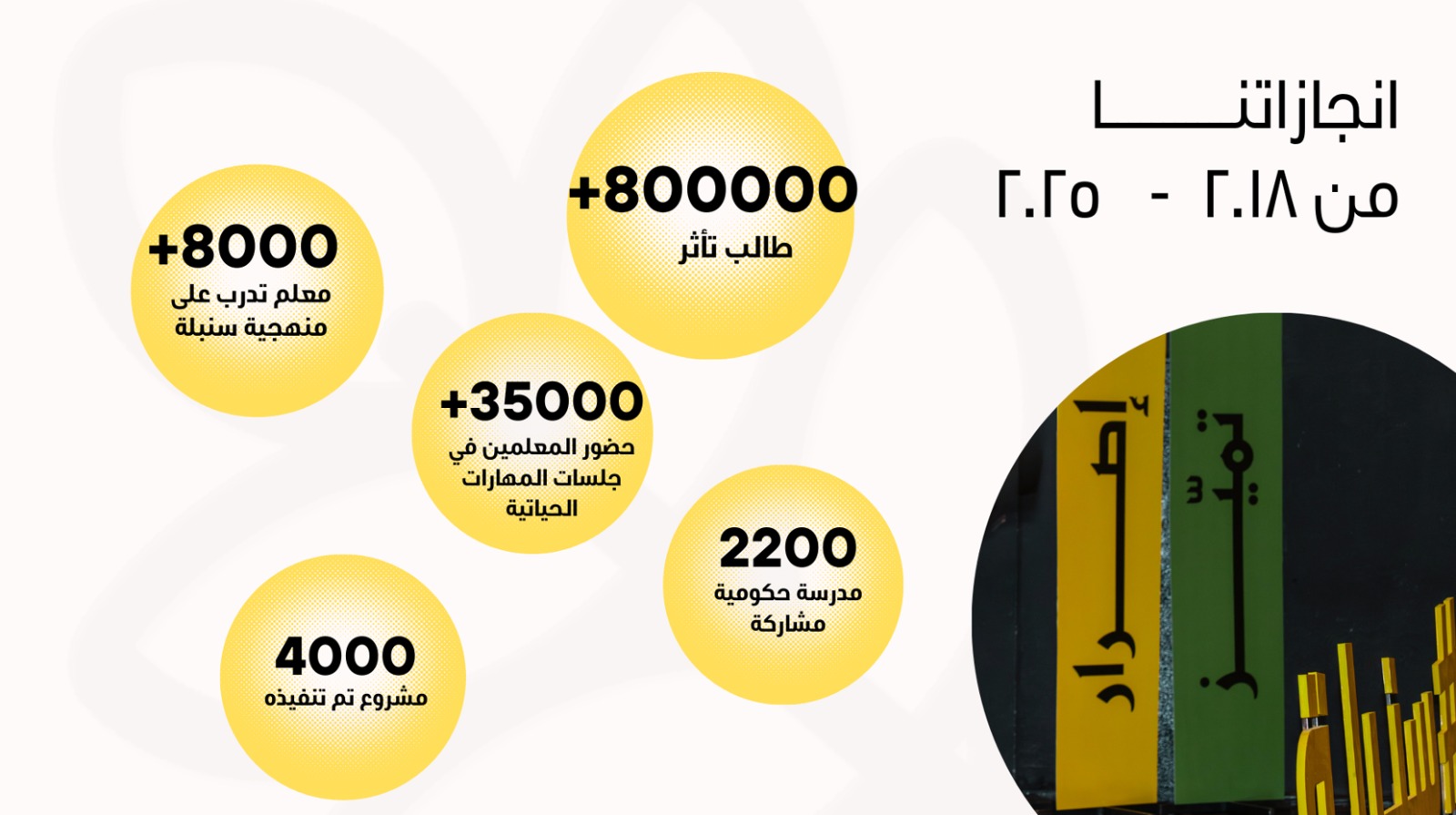 نشر ثقافة الابداع والريادة الاجتماعية في نفوس معلمينا في المدارس الحكومية ليكونوا قادرين على التغيير وبث الروح الايجابية لتحسين بيئتهم المدرسية وتحويل التحديات داخل مدارسهم الى افكار وحلول يتم  تطبيقها على ارض الواقع