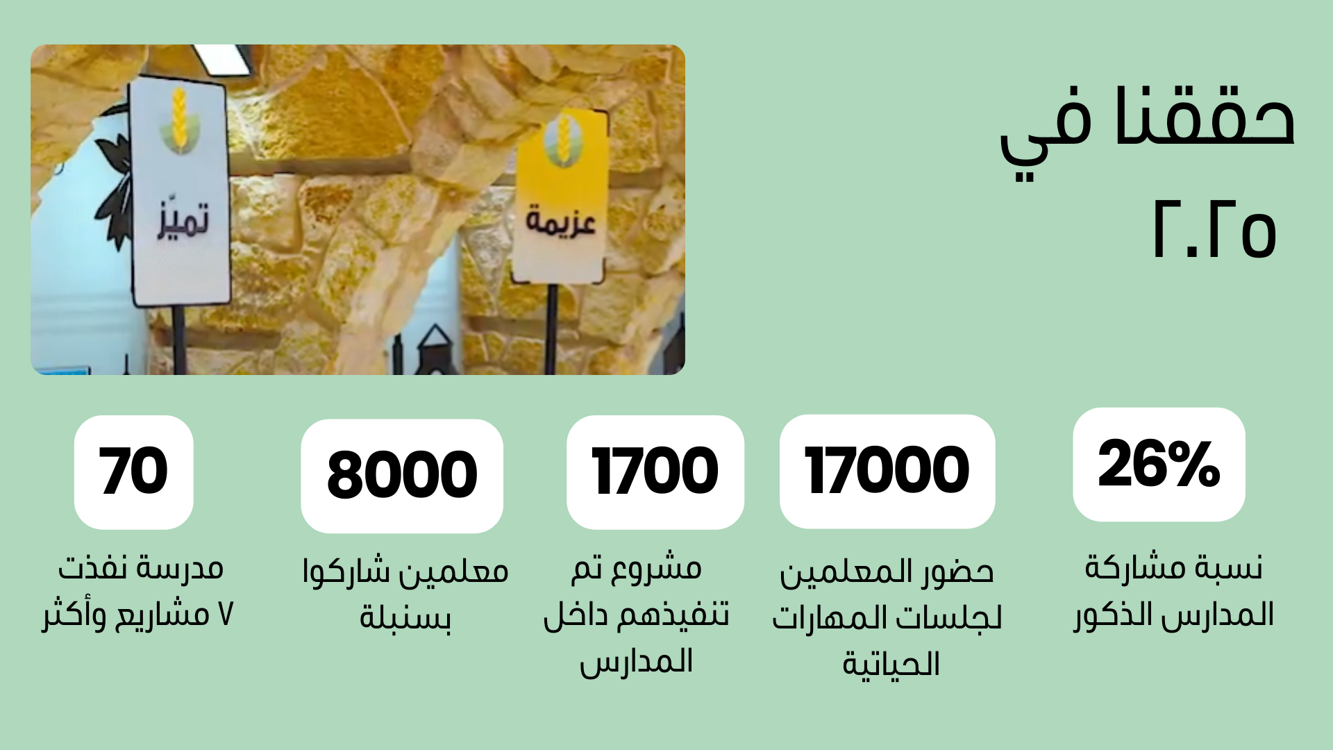 لقد نجحنا في تطبيق مبادرة سنبلة خلال  الست سنوات بــ 2200 مدرسة حكومية في كافة محافظات المملكة .