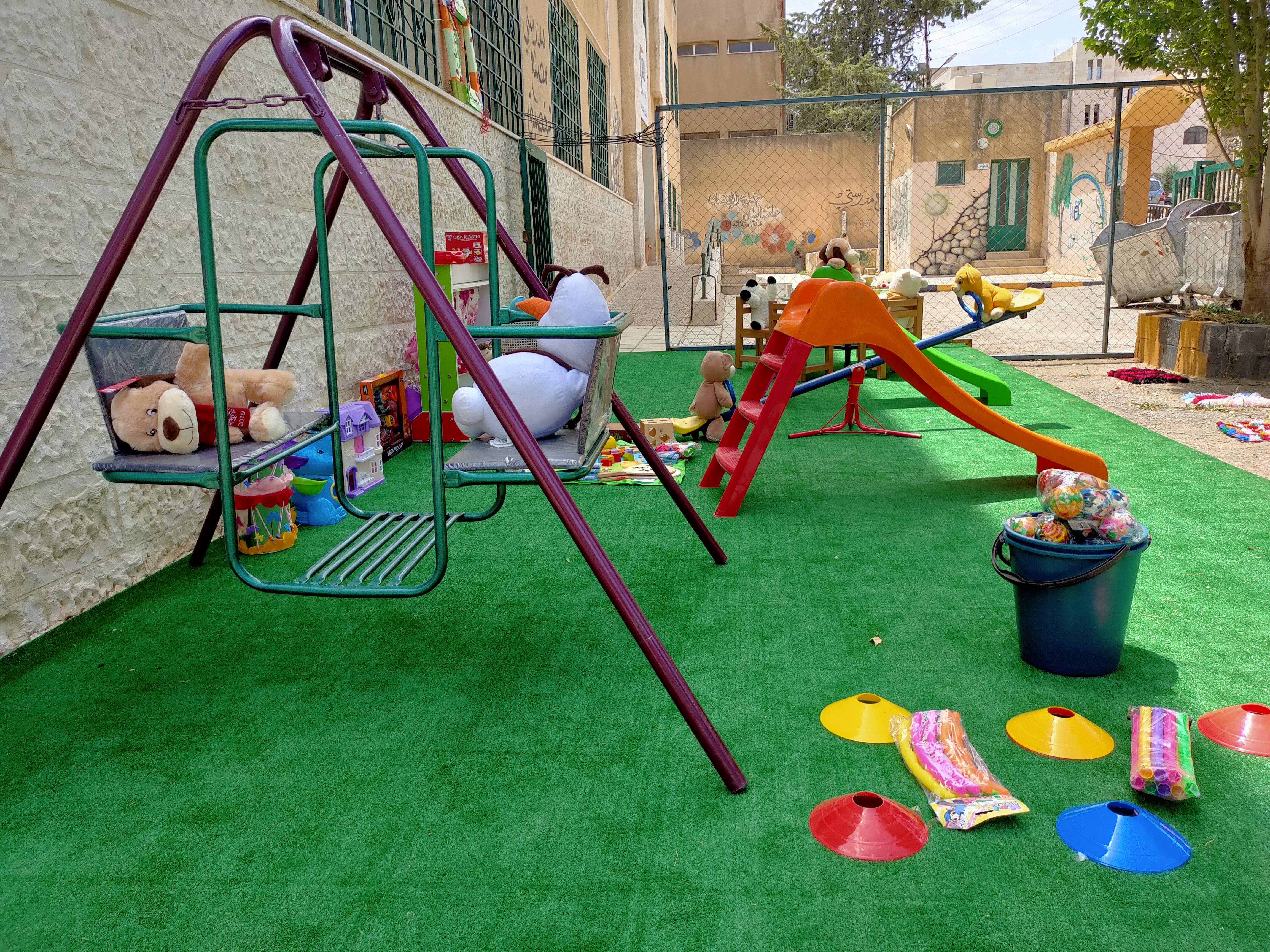 تخصيص مساحه داخل المدرسة وتحويلها الى غرفة العاب تحتوي على العاب ودمى وقصص للاطفال بدعم من المجتمع المحلي